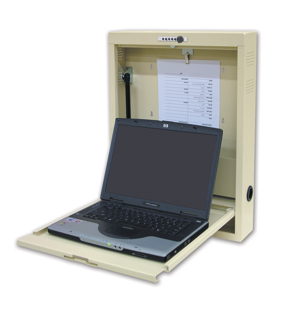 rear cutout). Our laptop wall desk has an economical flat key lock for security. An optional 12 CFM exhaust fan can easily be installed.